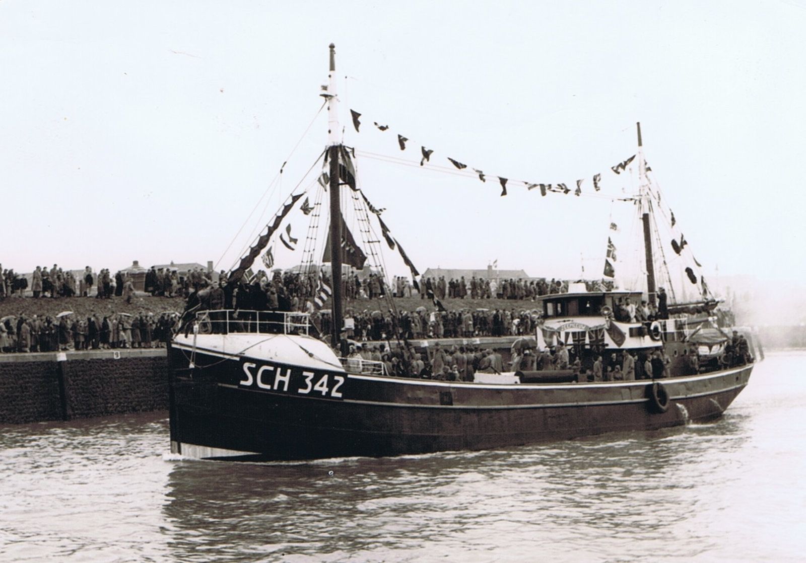 De visafslag is nog wel in gebruik maar heeft het veel minder druk dan vroeger. In de jaren 50, 60 en 70 van de vorige eeuw lagen de havens van Scheveningen vol met kotters en loggers maar van die vloot is weinig tot niets meer over. Het schetst toch wel een zwart beeld voor de toekomst van de visserman. De politiek zal moeten ingrijpen om de visserij voor Scheveningen te behouden. Hieronder meer dan 100 foto ‘ s van oude loggers en kotters uit de tijd dat de visserij op Scheveningen bloeide en groeide.